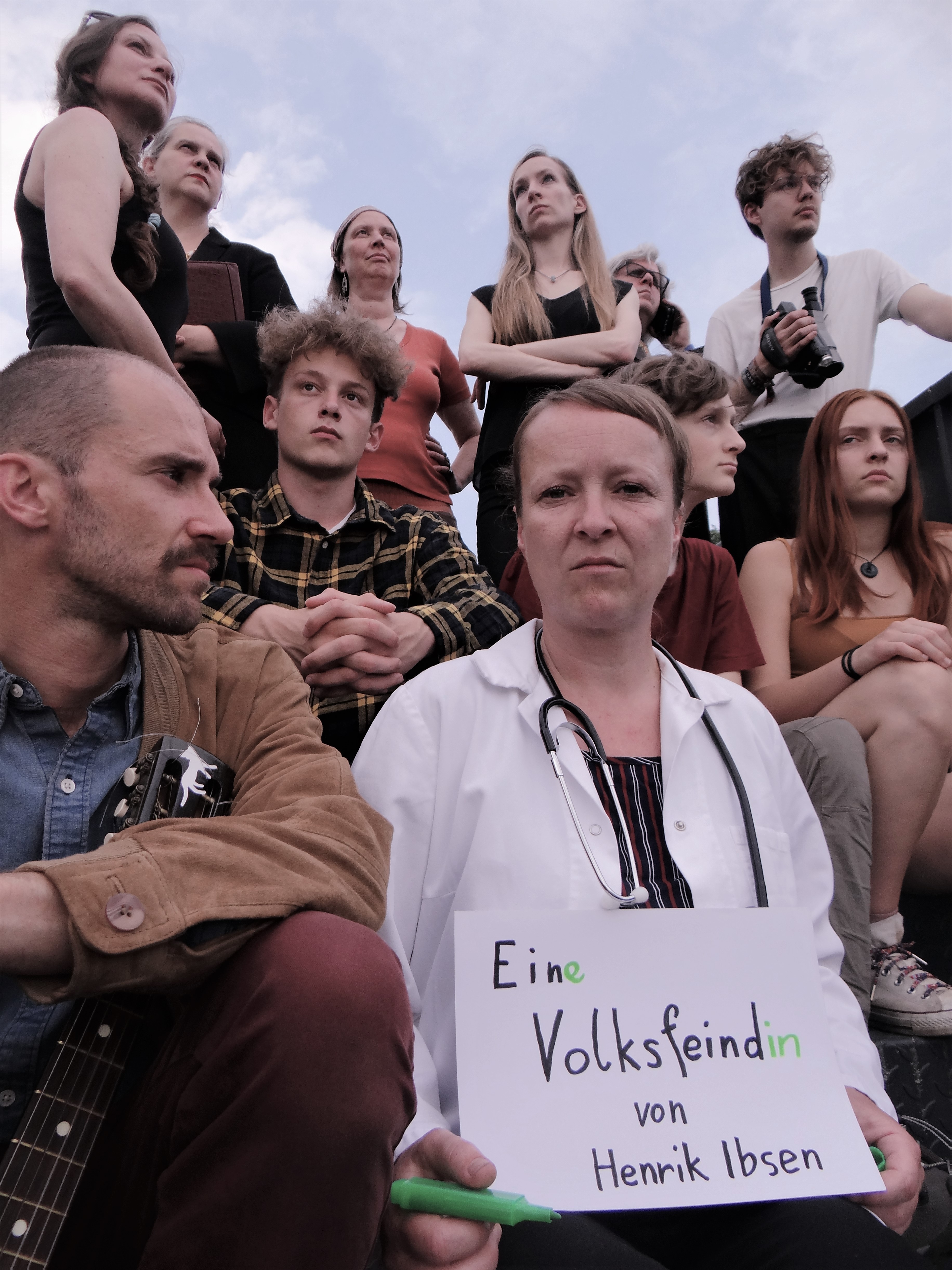 des Theaterstückes ist der Konflikt zwischen einer Badeärztin und den Honoratioren sowie der Bürgerschaft eines Kurortes. Die wirtschaftlich stark vom Kurbad abhängige Stadt diffamiert die Badeärztin als einen Volksfeindin. Denn sie will ein wissenschaftliches Gutachten veröffentlichen, wonach das Wasser des Kurbads verseucht ist. Schließlich kommt sie zu dem Schluss, dass die gesamte Gesellschaft vergiftet sei, da sie auf dem „Boden der Lüge ruht“. Sie behauptet, die „kompakte, liberale“ und „geschlossene Mehrheit“ sei der „gefährlichste Feind der Wahrheit und der Freiheit.“