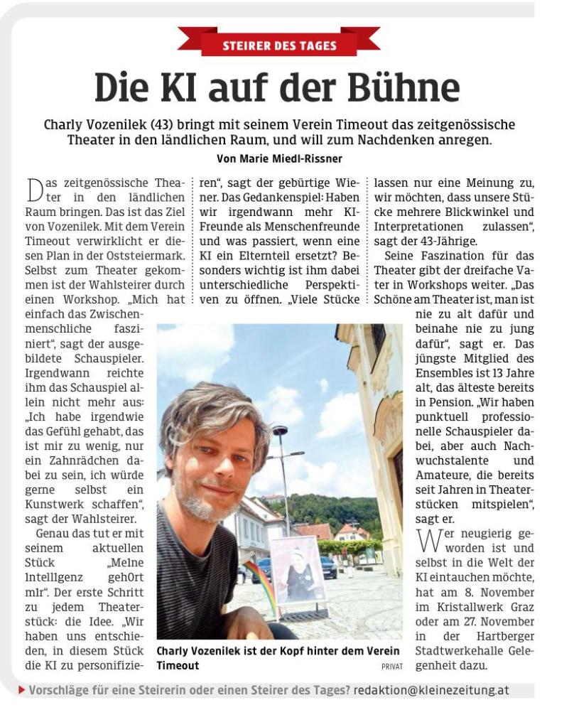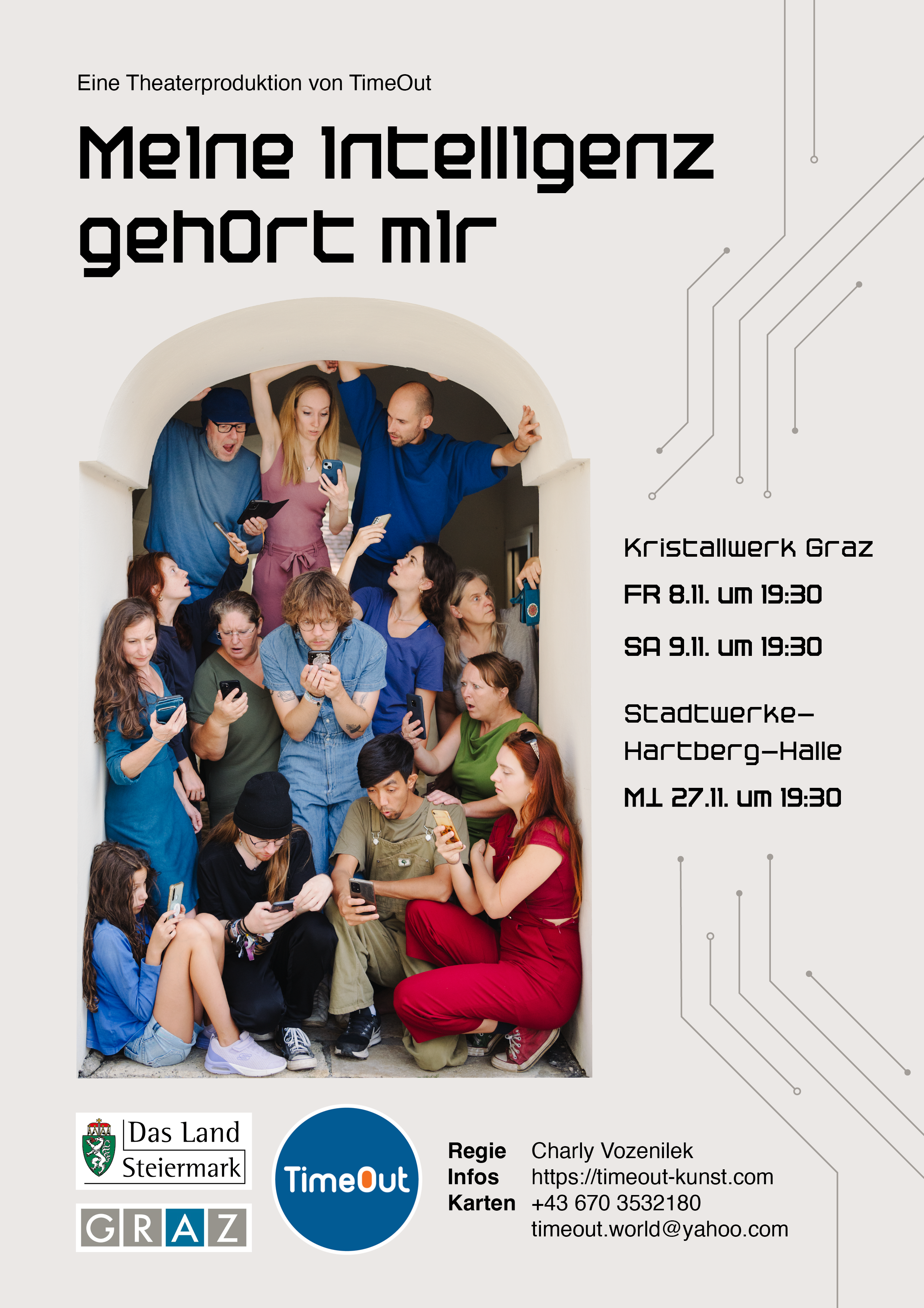 Unser zeitgenössisches Theaterprojekt „Me1ne 1ntell1genz geh0rt m1r“ stellt die komplexe Beziehung zwischen Menschen und Künstlicher Intelligenz in den Mittelpunkt. Mit einem spannenden roten Faden und bitterbösem Humor erforschen wir, wie KI sowohl Unterstützung bieten als auch beeinträchtigen kann, und regen dazu an, über ihren Einfluss auf unser Denken und Handeln zu reflektieren. Durch die Personifizierung von Apps und KIs als menschliche Figuren schaffen wir einen direkten Bezug zu unserem täglichen Umgang mit Technologie. Schauspiel und Tanz gehen Hand in Hand auf eine abenteuerliche Reise in die „Online-Welt“ und erkunden dort, ab wann Technologie zu viel Einfluss auf unser Leben gewinnt und wie wir unsere Autonomie für ein selbstbestimmtes Leben bewahren können.
